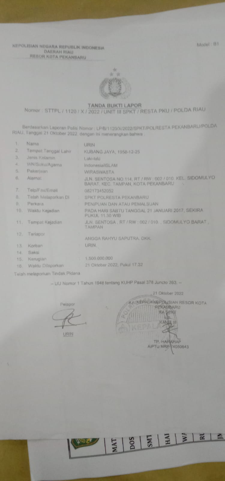 Sesuai dengan laporan tersebut pihak Bank Bank, OJL, dan BI Pekanbaru yang telah disurati secara resmi oleh Kuasa Hukum Korban tidak berani melakukan pencairan angka kredit karena telah di peringati mengenai prinsip kehati-hatian bank berhubung pihak Bank Mandiri Cab. Pekanbaru telah menghubungi Kuasa Hukum Pelapor karena terlebih Dahulu Angga Rahyu mengabarkan sesuatu yang tidak benar mengenai permasalahan sudah selesai. Bahwa perkara laporan korban dipolresta Pekanbaru telah selesai.