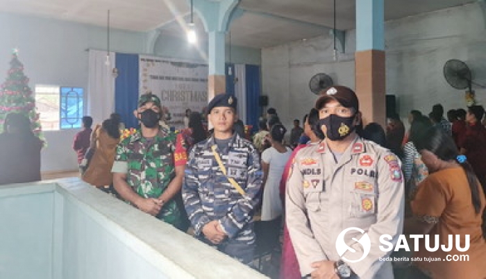 SATUJU.COM, Lingga - Dalam rangka menuju perayaan natal Tahun 2022 umat kristiani, TNI-Polri bersinergi melakukan pengamanan Gereja, salah satunya Gereja BPdI Penuba, Desa Penuba, Kecamatan Selayar, Minggu (4/11/2022)