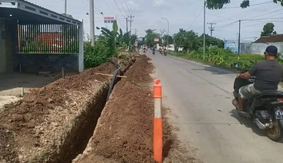 Teks poto : PDAM Tirta Mulia Pemalang, mengganti ribuan meter pipa air bersih di sepanjang jalan Wahidin Sudirohusodo, kecamatan Taman, Kabupaten Pemalang.