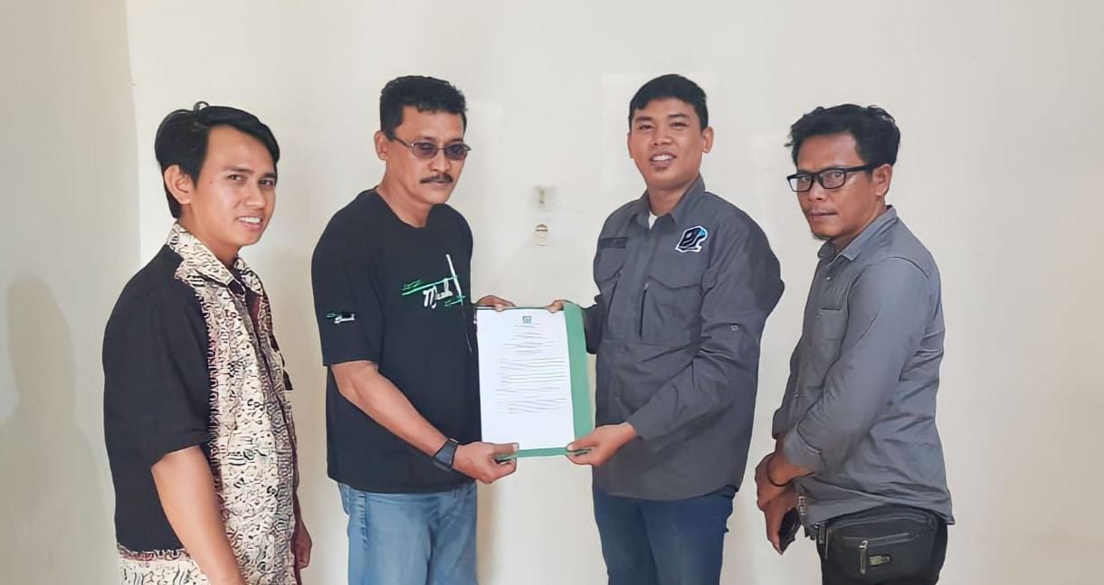 Ketua DPD PJS Jambi, Wahyu Jati menyerahkan Surat Keputusan (SK) DPC PJS Batanghari, di jalan Koni, Lrg H Bahrun, Kelurahan Rengascondong, Kecamatan Muarabulian, Kabupaten Batanghari, Kamis (08/12/2022). SK tersebut diterima Suhardianto yang akan menahkodai PJS Batanghari periode ke depan yang didampingi Sekretaris Rudiansyah dan Wakil Bendahara M. Agus Prianto.