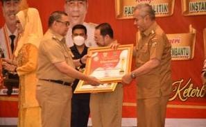 Penghargaan langsung diterima oleh Pj Bupati Kampar Kamsol yang diserahkan oleh Wakil Guberbur Riau Edy Natar Nasution,di Ballrom Mutiara Mardeka Hotel Pekanbaru, Senin (12/12/2022).