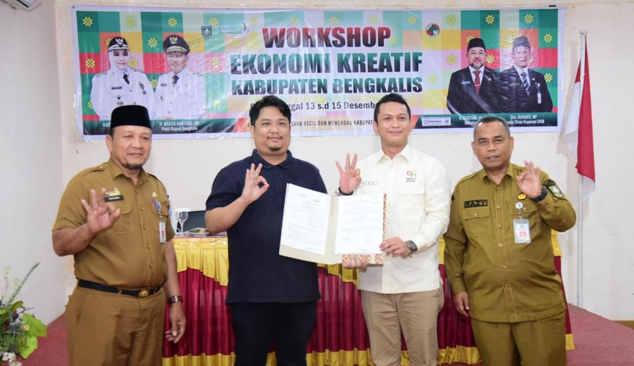 SATUJU.COM BENGKALIS - Kerja sama antara Bengkalis Creative Network (BCN) Kabupaten Bengkalis dan Dinas Koperasi Usaha Mikro Kecil dan Menengah (Diskop UMKM) menyelenggarakan kegiatan Workshop Ekonomi Kreatif.