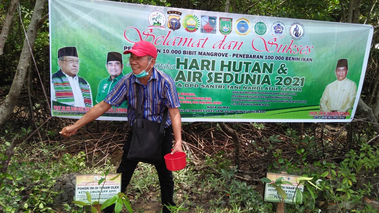 “Acara peringatan Hari Hutan Sedunia dan Hari Air sedunia yang digagas oleh Ketua SANTAN NU bapak Rusli Ahmad memberikan pembelajaran kepada kita semua agar lebih menghargai alam, dimana kita bisa merasakan beberapa tahun silam, Riau dilanda bencana asap yang sangat menggangu kesehatan kita," ujar pria hobi yang bertopi merah itu.