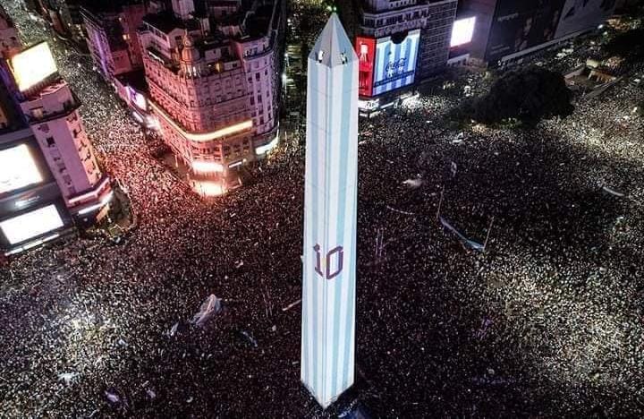 Sebenarnya, ketika tendangan penalti Gonzalo Montiel memastikan kemenangan Argentina dalam drama adu penalti, warga sudah memenuhi Monumen Obelisk untuk bersorak dan menari merayakannya.