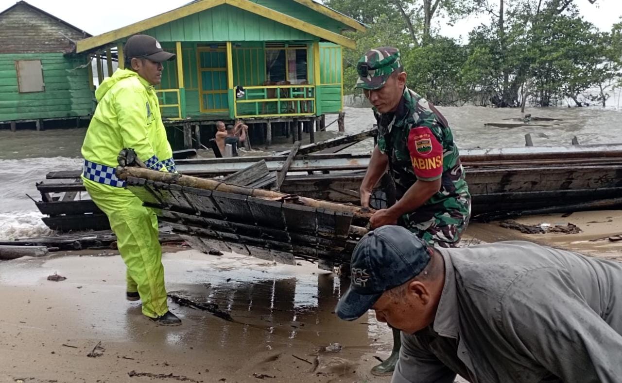 Sinergitas TNI-POLRI Lakukan Evakuasi dan Pembersihan Puing Akibat Cuaca Buruk