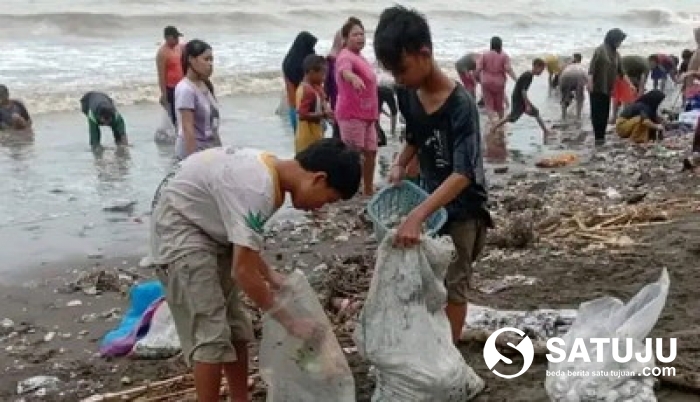 Satuju.com, Pemalang - Masyarakat pesisir pantai muara indah,desa asemdoyong, kecamatan Taman, kabupaten Pemalang, Jawa Tengah, berbondong - bondong pergi ke pantai berebut panen kerang bokor atau kerang engsol, ada juga sering di sebut dengan nama kerang darat. sabtu ( 24/12/2022 ). kemarin.