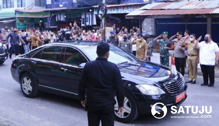 PEKANBARU, Satuju.com - Penjabat (Pj) Walikota Pekanbaru, Muflihun, S.STP, M.AP menyambut langsung kedatangan Presiden Republik Indonesia (RI) Joko Widodo atau Jokowi, saat berkunjung di Pasar Wisata Pasar Bawah, Jalan Ahmad Yani, Pekanbaru, Rabu (4/1).