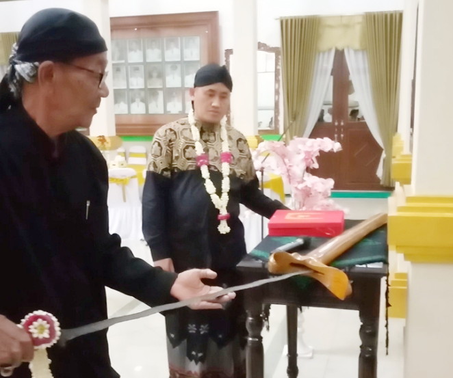 Dirinya menjelaskan, "benda pusaka yang bernama *tapak dan mongklang* mempunyai bentuk dan panjang yang tidak lazim, yaitu keduanya berukuran panjang 1.3 meter (ukuran logam besi nya) tidak menghitung paksi (pegangan/ gagang keris), ada hal yang menakjubkan ketika keris ini di cabut dari kerangkanya ,akan mengeluarkan warna hijau mengkilap.