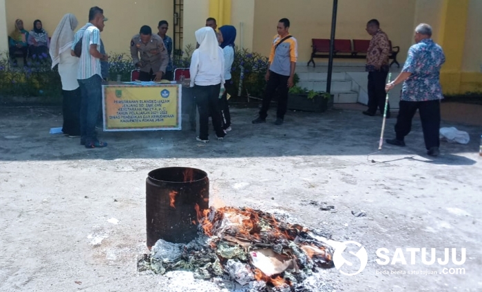 ROHIL, Satuju.com - Memusnahkan Blangko ijazah Tak Terpakai diHalaman Kantor Dinas pendidikan dan kebudayaan kabupaten Rokan Hilir di saksikan di hadapan Iptu Nofdial Panit satu Samapta Polsek Bangko, Brika Raka M, Bersama Kabit tendik Kuswantoro M.pd , Kabit budaya Samsul M.pd , Kabit paut Dewi Sartika ssi, kasi kulikulum SD Gunawan , kasi kulikulum SMP Nur Liana m.pd , kasi Perseta didik paut Wisnu S.pd, rekan-rekan media menyaksikan pemusnahan barang bukti blangko ijazah tak Terpakai Tahun 2022, Kamis (2/2/2023).
