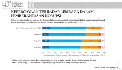 Poto : Kepercayaan Terhadap Lembaga Dalam Pemberantasan Korupsi. Lembaga Survei Indonesia (LSI).