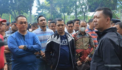 PEKANBARU, Satuju.com - Pj Wali Kota Pekanbaru, Muflihun bersama Sekda kota pekanbaru Indra Pomi Nasution dan sejumlah asisten hingga kepala OPD Pemko pekanbaru meninjau langsung gedung utama MPP Pekanbaru yang terbakar, Minggu (5/3/2023) pagi ini.