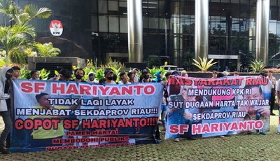 "Setelah apa yang dilakukan Sekda Provinsi Riau SF Hariyanto tentang flexing hidup mewah keluarganya maka kami perlu sampaikan agar KPK RI memanggil SF Hariyanto dan memeriksa harta kekayaannya," kata koordinator aksi, Kamis (6/4/2023).
