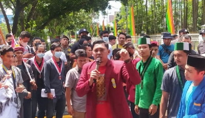 Poto : Saat demo Ketua IMM RIAU, Ali Topan.
