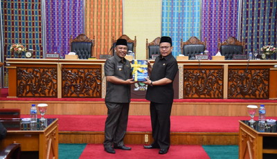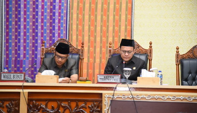 Teks foto: Ketua DPRD H. Khairul Umam, Bupati Bengkalis yang diwakili oleh wakil ketua H. Bagus Santoso menyampaikan isi LKPJ Tahun Anggaran 2022.