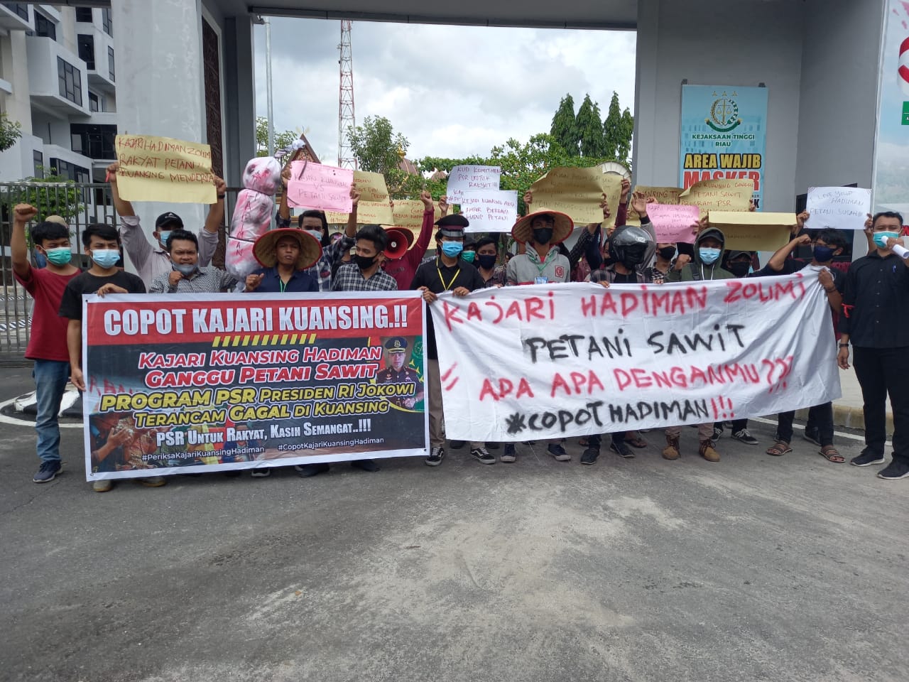 Kami datang kesini, ke kejaksaan tinggi di pekanbaru ini meminta keadilan kepada bapak kejaksaan tinggi, mohon kami masyarakat kecil ini diberi petunjuk, kepada bapak kami mengadu, kami sudah jenuh dengan pemanggilan-pemanggilan dari kejari kuansing. Kami hanya ingin mengais rezeki untuk anak istri kami dengan tenang.