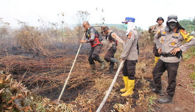 Kini sudah 2 hari Satgas Polres Bengkalis berupaya memadamkan kebakaran hutan di Pulau Rupat. Lokasi kebakaran yang jauh dan sulit dijangkau, kondisi cuaca panas ekstrim dan terbatasnya sumber air menyulitkan Satgas untuk melakukan pemadaman. Namun, dengan semangat juang dan kerja keras, tim pemadam kebakaran dari Polres Bengkalis terus berupaya untuk memadamkan api yang berkobar-kobar di hutan tersebut.