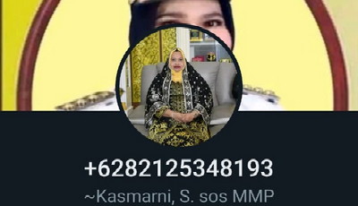 Dalam aksinya, pelaku menggunakan nomor WhatsApp +62821 - 2534 - 8193 atas nama Kasmarni, S.Sos. MMP memasang poto Bupati Bengkalis ketika menerima gelar adat beberapa waktu lalu.