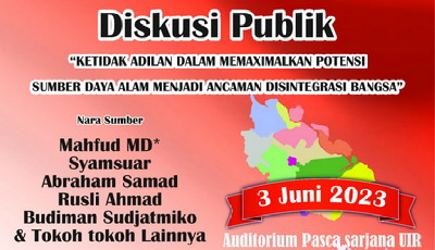 acara ini. Harapan dari diskusi ini dapat menjawab persoalan pembagian Sumber daya alam Riau.