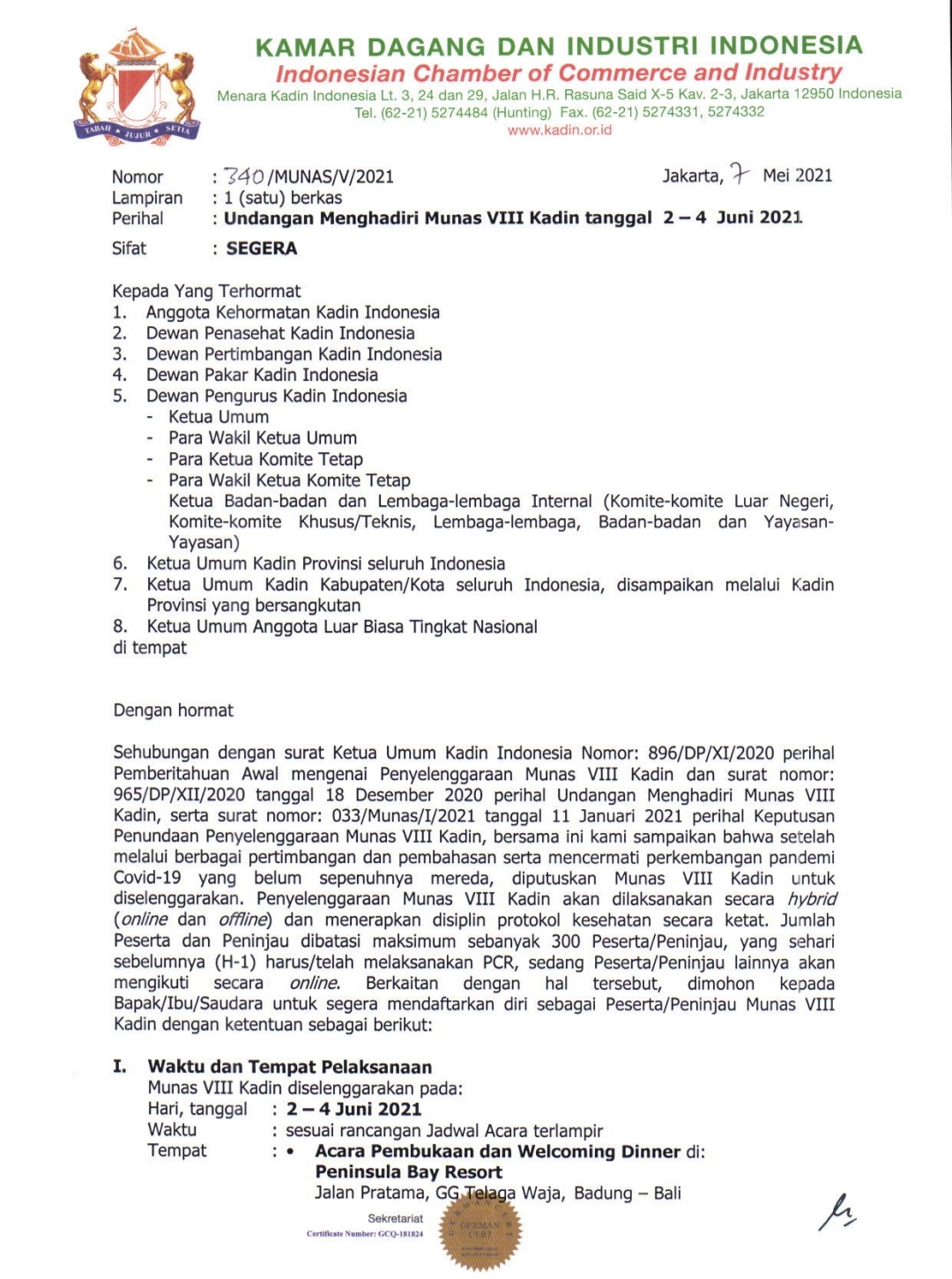 Ket.poto : Salah satu bukti konkret bahwa tidak adanya Dualisme Kepengurusan KADIN ialah, Ketua Kadin Bengkalis Terima undangan Menghadiri Munas VIII Kadin tanggal 2 - 4 Juni 2021.