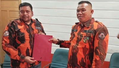 Bengkalis, Satuju.com - Bersama rombongan anggota PP kecamatan Bengkalis dan Bantan, Rainer yang diketahui sebagai Kader dan juga pernah menjabat sebagai wakil ketua MPC PP Bengkalis, mendatangi Sekretariat panpel Muscab X PP Kabupaten Bengkalis dengan menyerahkan sejumlah dokumen sesuai persyaratan bacalon ketua MPC PP Bengkalis yang telah ditentukan dan disambut oleh Dendi sebagai Panitia pengarah Muscab PP.