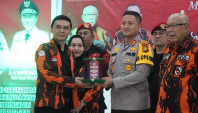 Kapolres Bengkalis, AKBP Setyo Bimo Anggoro, S.H., S.I.K., M.H. hadiri acara pelantikan Ketua Majelis Pimpinan Cabang (MPC) Pemuda Pancasila Kabupaten Bengkalis
