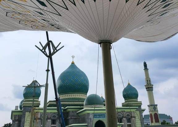 Proyeknya Jadi Polemik, Payung Elektrik Masjid Agung An-Nur Selesai Dikerjakan