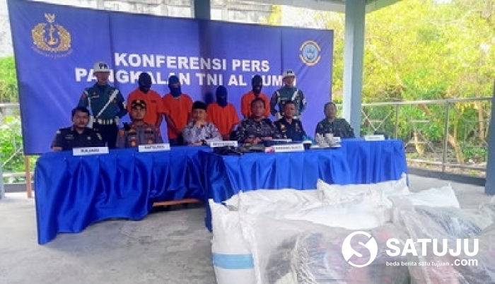 Komandan Pangkalan Angkatan Laut (Lanal) Dumai, Kolonel Laut (P) Kariady Bangun, menggelar konferensi pers