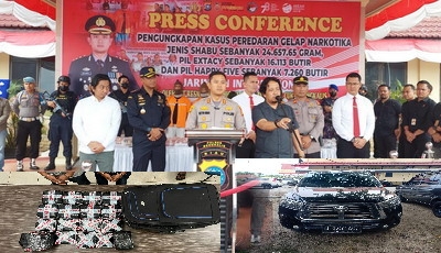 BENGKALIS, Satuju.com - Polres Bengkalis melalui Sat Res Narkoba berhasil menggagalkan peredaran narkoba jaringan internasional berupa Sabu 8.613 gram, ekstasi 16.113 butir, dan pil Happy Five 7260 butir.