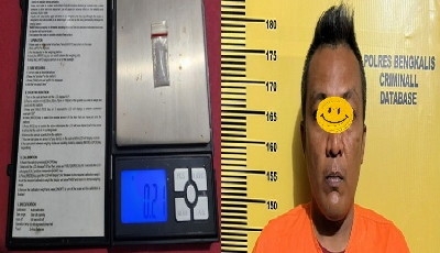 Atas aduan dari masyarakat sekitar, Polres Bengkalis melakukan lidik setelah mendapat informasi yang akurat pada Sabtu, 25 Agustus 2023 sekitar pukul 14.30 WIB. Polres Bengkalis berhasil mengamankan pelaku beserta barang bukti berupa satu bungkus plastik yang diduga berisi narkotika jenis sabu dengan berat 0,21 Gram, satu unit handphone android merk Samsung warna biru dan satu unit handphone android merk Oppo warna hitam.