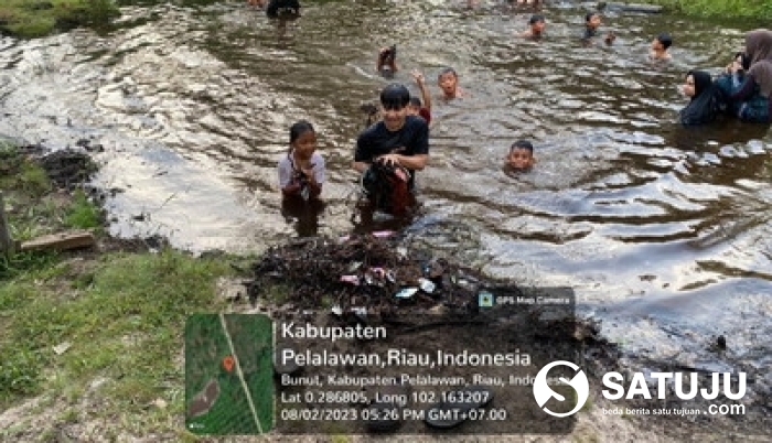 PELELAWAN, Satuju.com - Antusias luar biasa dari Anak-Anak di desa Petani untuk melakukan aksi literasi sore sambil membersih kali di Bantaran kali Kecil di Dusun satu Desa petani, Kecamatan Bunut, bersama kami mahasiswa Kuliah Kerja Nyata (KKN) Universitas Muhammadiyah Riau (UMRI) SMART Kelompok 50 melakukan kegiatan literasi sore untuk menambah wawasan anak - anak desa petani, Kabupaten Pelelawan. Senin, (28/08/23).