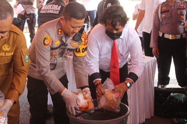 Sat Narkoba Polres Bengkalis Lakukan Pemusnahan Puluhan Ribu BB Kasus Narkotika