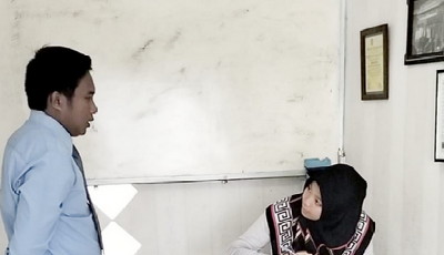 Ket. poto: Abdul Kadir, S.Pd., M.Pd., MIKom saat mengajar calon wartawan, Nur Azizah Melani calon sarjana Ilmu Komunikasi dari Universitas Riau (UNRI).