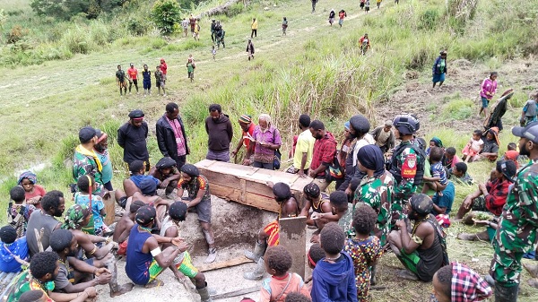 Satgas Mobile Raider 300 Siliwangi Bantu Pemakaman Seorang Warga yang Alami Kecelakaan di Papua