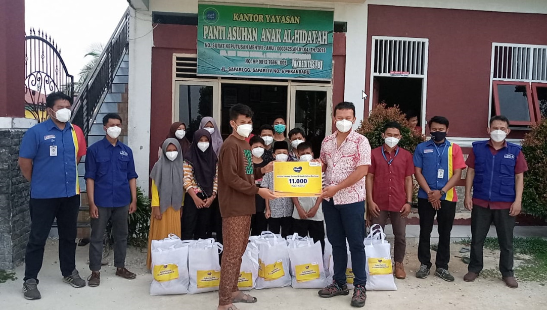 Tim relawan lalu membagikan bantuan paket nutrisi kepada 13 anak yatim dan dhuafa di Panti Asuhan Al Akbar, yang berlokasi di Jalan Soekarno Hatta Arengka Atas, Kelurahan Maharatu, Kecamatan Marpoyan Damai, Kota Pekanbaru.