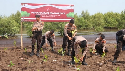 Polres Bengkalis Gelar Penanaman Mangrove Serentak di Kecamatan Bantan untuk Lestarikan Lingkungan