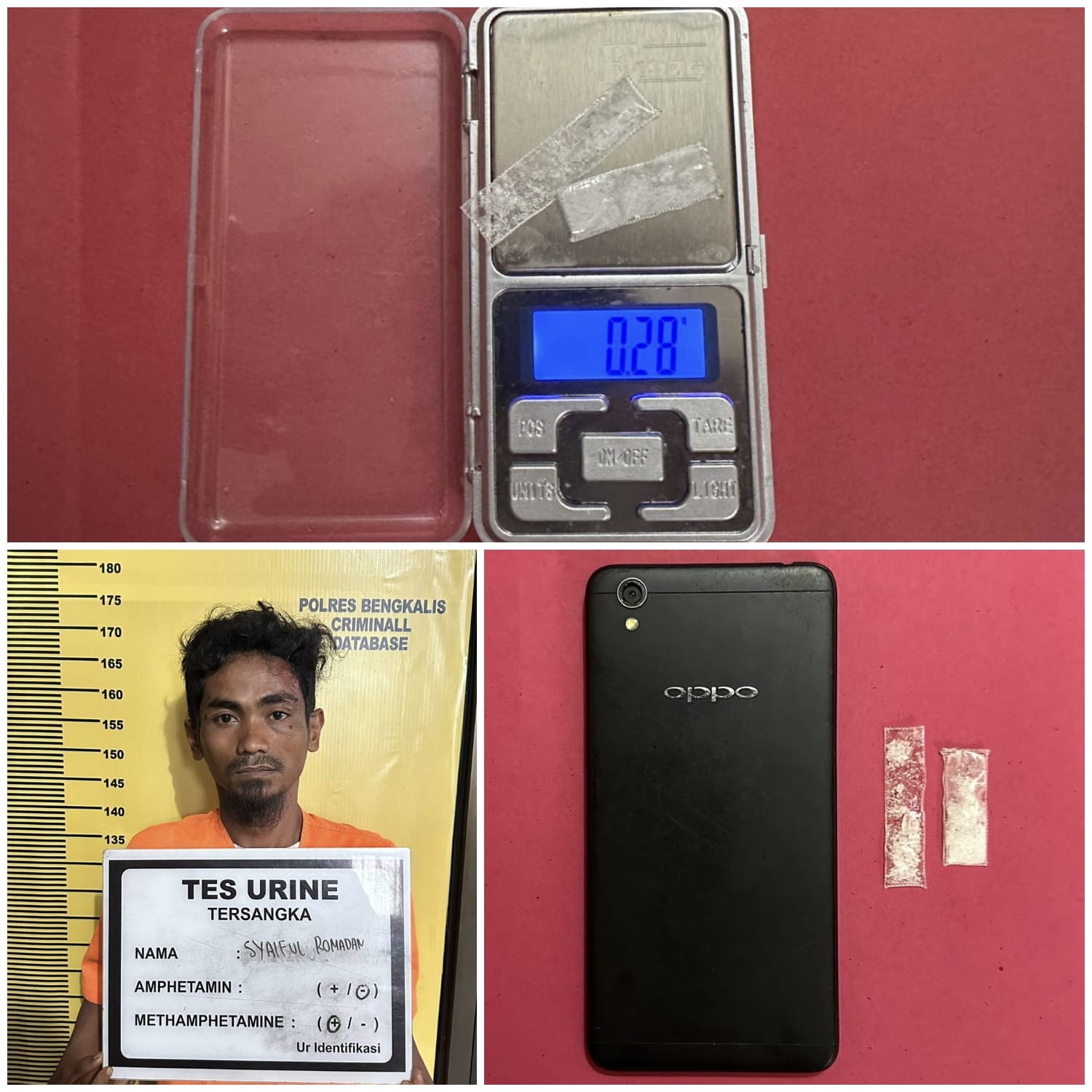 Bengkalis, Satuju.com - Tim Opsnal Polres Bengkalis berhasil mengamankan tersangka pengedar narkotika jenis sabu seberat 0,28 gram di Jalan Utama Teluk Latak, Desa Teluk Latak, Kecamatan Bengkalis, Kabupaten Bengkalis, Sabtu (21/10/2023) lalu.
