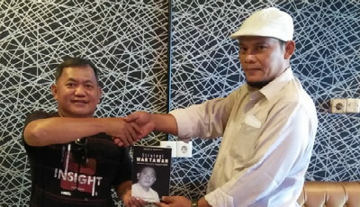 PEKANBARU, (Riau) - Direktur Utama Lembaga Pendidikan Wartawan, Pekanbaru Journalist Center (PJC), Drs. Wahyudi El Panggabean, M.H., menyerahkan salah satu buku karyanya: Strategi Wartawan Menembus Narasumber, kepada Ketua Dewan Pimpinan Daerah - Aliansi Pewarta Pertanian Indonesia (DPD - APPI) Riau, Romi, Jumat (6/8).