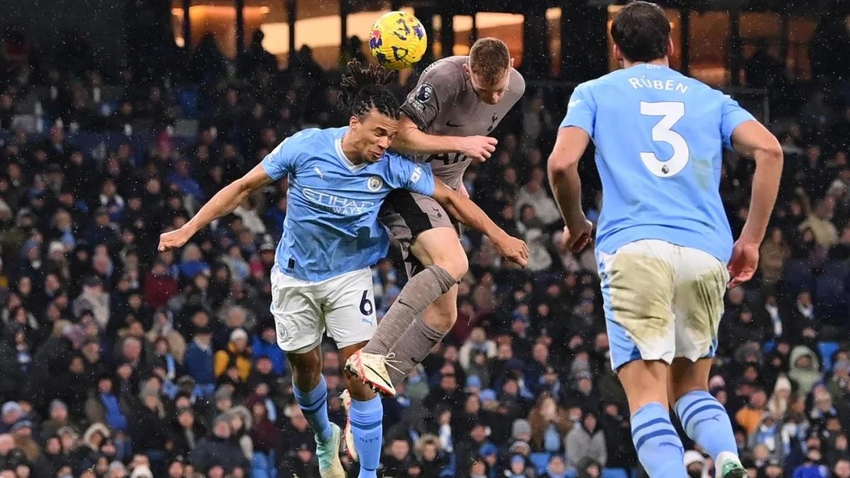 Man City terus menggempur pertahanan Tottenham. Bola tembakan diukur Doku pada menit ke-29 sudah melewati jangkauan Vicario, namun masih membentur mistar gawang.