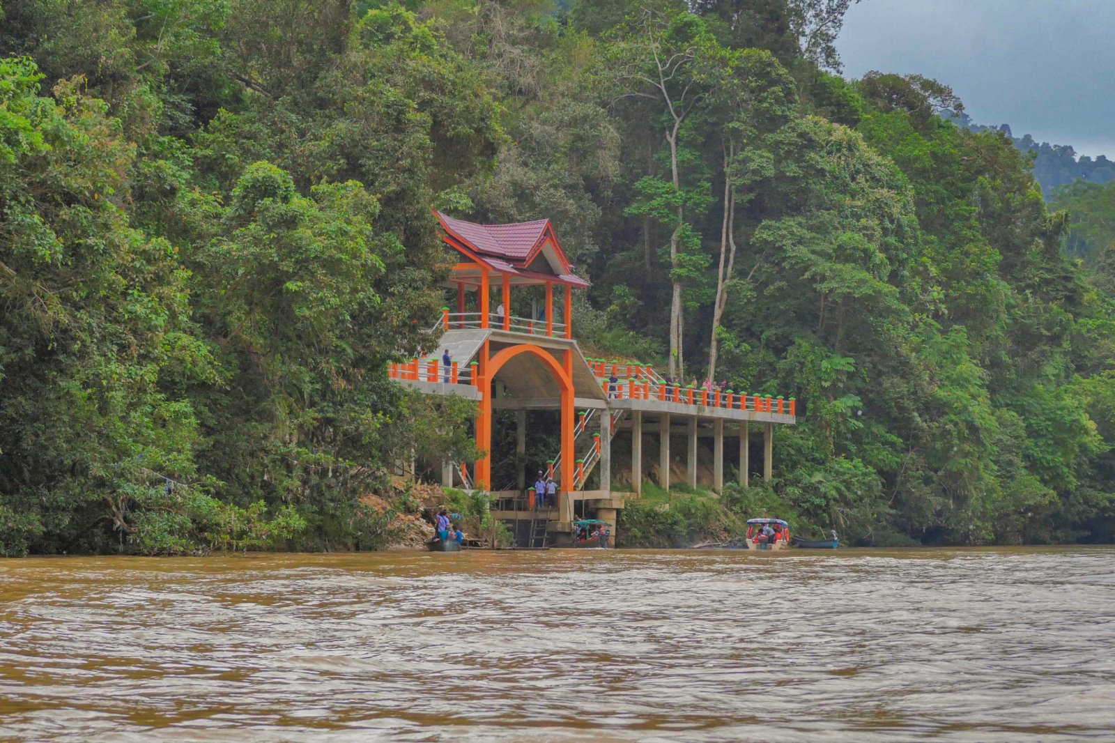 Dari situ, selanjutnya perjalanan menelusuri Sungai Kuantan menggunakan transportasi sungai milik warga setempat, yakni sampan kayu bermotor dengan kapasitas penumpang lima hingga sepuluh orang. Tarifnya Rp30 ribu per orang.