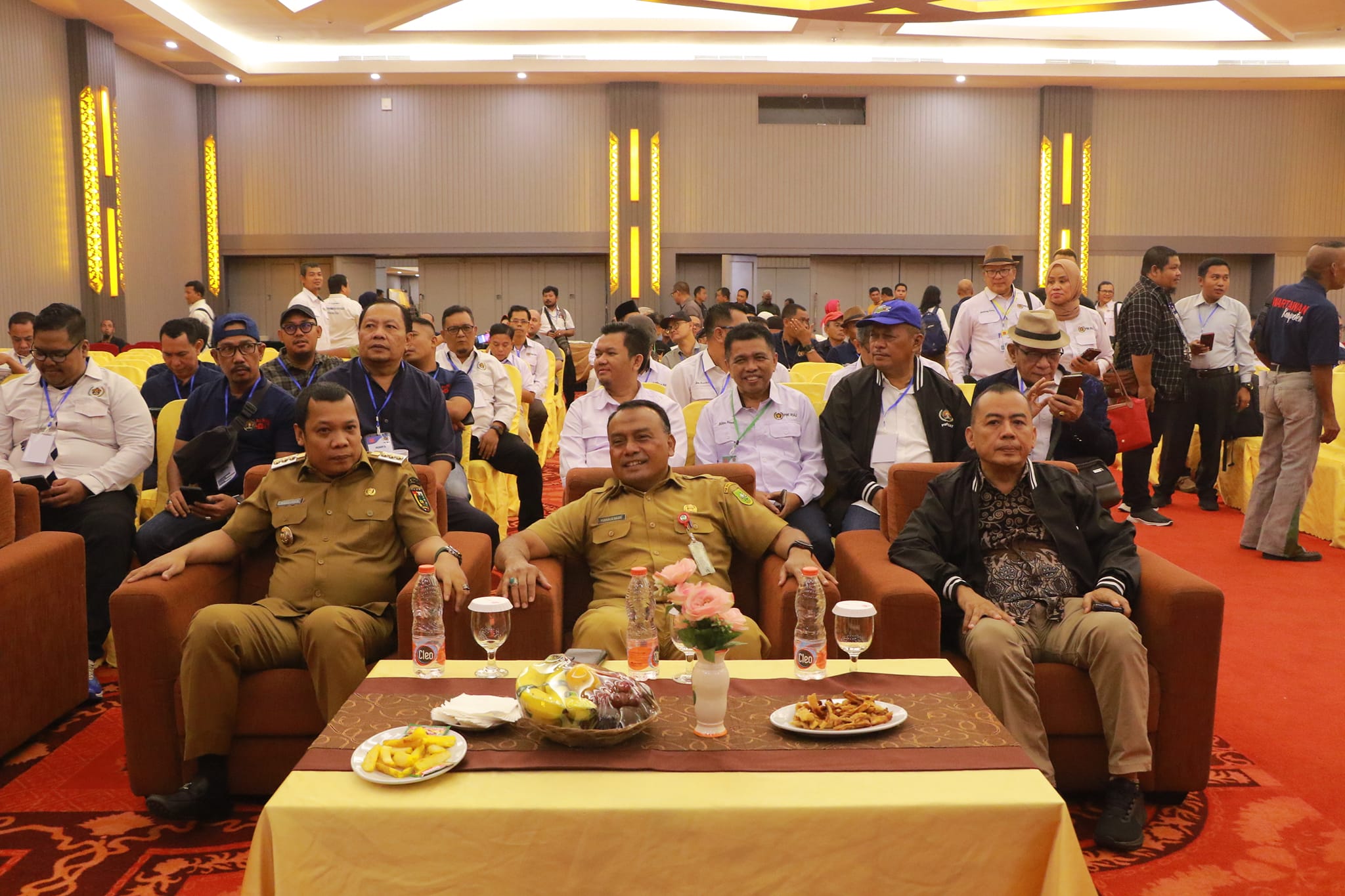 enjabat (Pj) Walikota Pekanbaru, Muflihun, S.STP., M.AP didampingi Kepala Dinas Komunikasi Informatika Statistik dan Persandian Kota Pekanbaru, Raja Hendra Saputra, S.STP Menghadiri Konferensi Luar Biasa (KLB) PWI Riau di New Hollywood Hotel