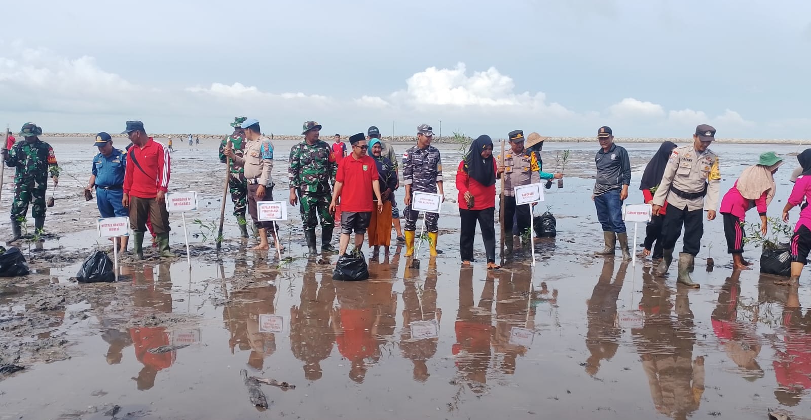 Bengkalis, Satuju.com - Pemerintah Kecamatan Bantan, Kabupaten Bengkalis menggelar penanaman pohon mangrove di PTR 186A Kuala Desa Muntai, Selasa (26/12/2023). Hal tersebut dilakukan dalam rangka mewujudkan penangkalan abrasi di pesisir pulau terluar Indonesia serta meningkatkan sinergisitas pemerintah Kecamatan Bantan, Koramil 01 Bengkalis, Polsek Bantan dan Pemerintah Desa Muntai.