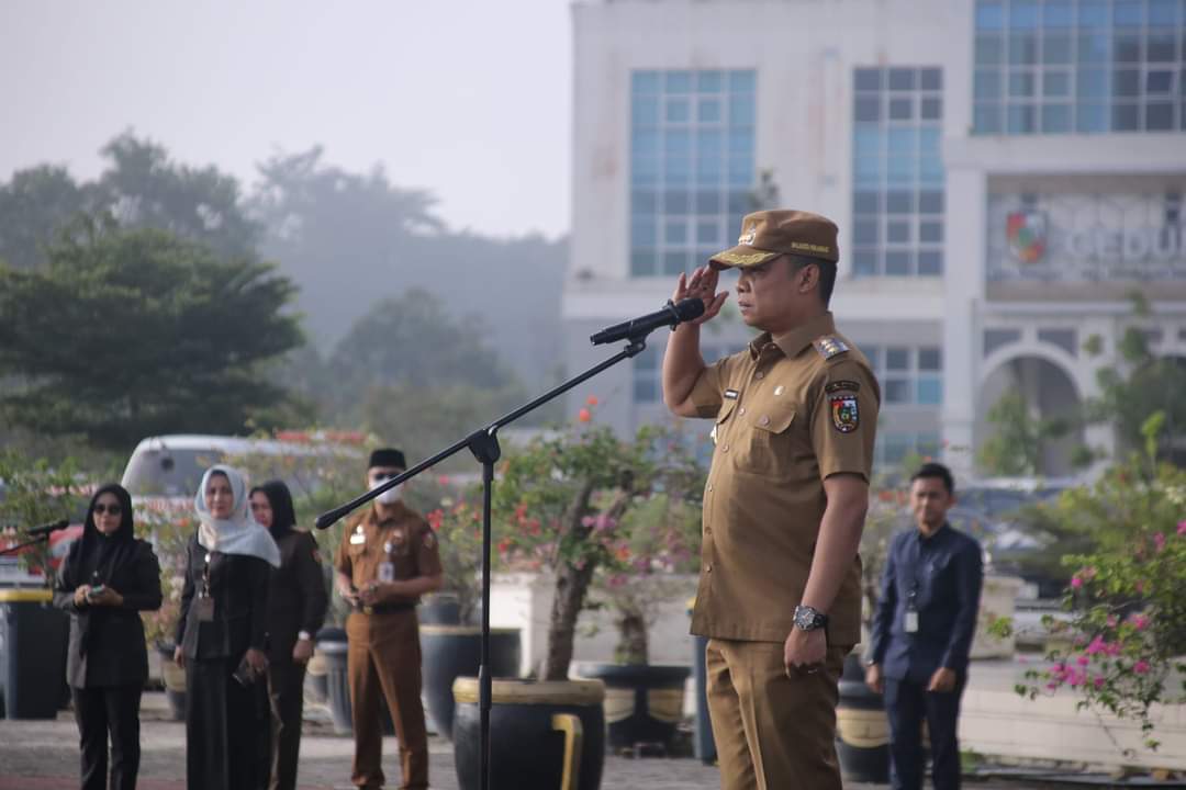 Penjabat (Pj) Wali Kota Pekanbaru Muflihun SSTP MAP menjadi pembina Apel pagi di Lingkup Pemko Pekanbaru di Lapangan Upacara Komplek Perkantoran Wali Kota Tenayan Raya