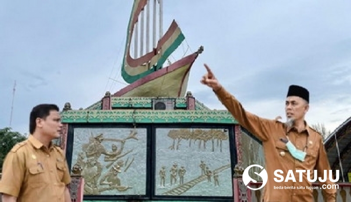Reza Fahlepi, ST (kiri) tugu Dumai, Walikota Dumai H Paisal (kanan)