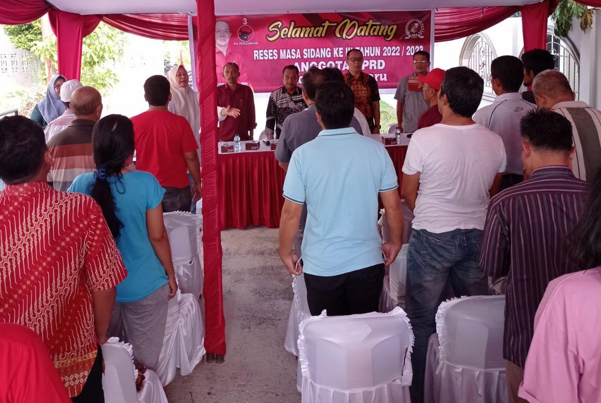 Ket. Foto: Robin Eduar bersama masyarakat menyanyikan lagu Indonesia Raya sebelum reses dimulai