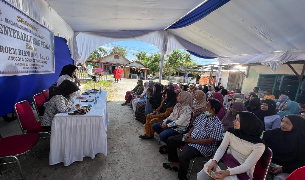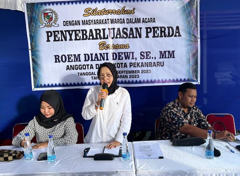 Pekanbaru, Satuju.com - Anggota DPRD Kota Pekanbaru, Roem Diani Dewi dari Fraksi Demokrat melaksanakan penyebarluasan peraturan daerah kota Pekanbaru pada Kamis (21/09/2023) di Jalan Tanjung Jati No 30 RT 03 RW 03 Kelurahan Pesisir Kecamatan Limapuluh.