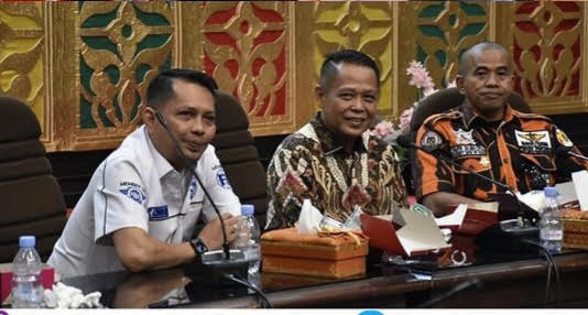 Wakil Ketua DPRD Kota Pekanbaru T Azwendi Fajri dan Anggota Komisi I Ali Suseno bersama KOTI MPW Pemuda Pancasila Riau sekaligus Ketua Badan Penyuluhan dan Pembelaan Hukum (BPPH) Pemuda Pancasila Riau, Taufik