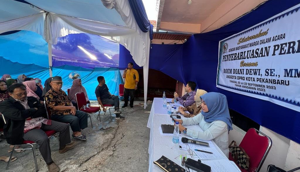 Pekanbaru, Satuju.com - Kegiatan penyebarluasan Perda Kota Pekanbaru dilaksanakan Anggota DPRD Kota Pekanbaru Roem Diani Dewi dari Fraksi Demokrat melaksanakan pada Jumat (22/9/2023) di Jalan Putri Nilam RT 02 RW 07 Kelurahan Kampung Tengah, Kecamatan Sukajadi.