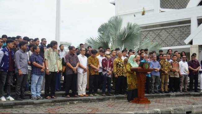 Rektor, guru besar dan perwakilan mahasiswa UMY pada Sabtu ini berkumpul di halaman depan kampus UMY bertemu Pesan Kebangsaan dan Imbauan Moral kepada seluruh penyelenggara negara.