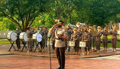 Upacara tabur bunga yang dipimpin Kapolres Bengkalis AKBP Hendra Gunawan, SIK, dan diikuti puluhan polwan serta beberapa pejabat tinggi di polres, jumlah peserta dibatasi mengingat masih masa pandemi covid-19.
