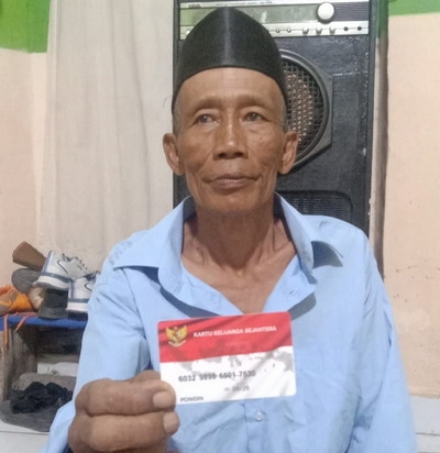 Ponidin (60) salah seorang KPM warga Pinang Baris Desa Indrayaman .